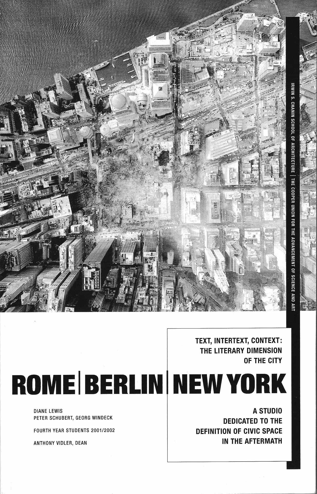 The project is a study of the plans of the cities of Rome, Berlin, and New York in order to propose a 21st Century civic institution and define its site with significance in regard to Freud's definition of the city as a psychic entity. This was the assignment to the fourth year architecture students at The Cooper Union on September 7, 2001. Four days later the destruction of the World Trade Center occurred.