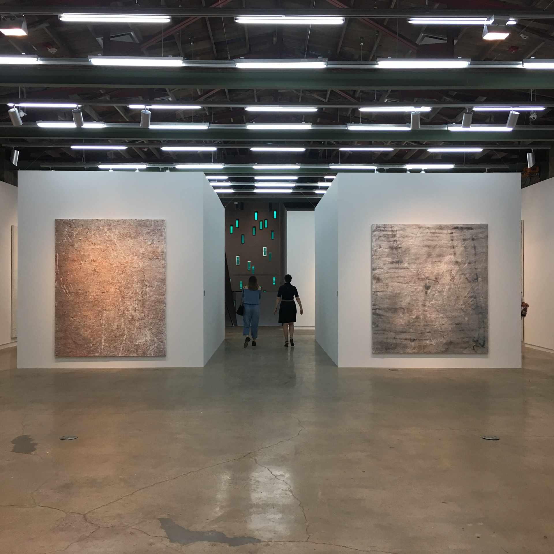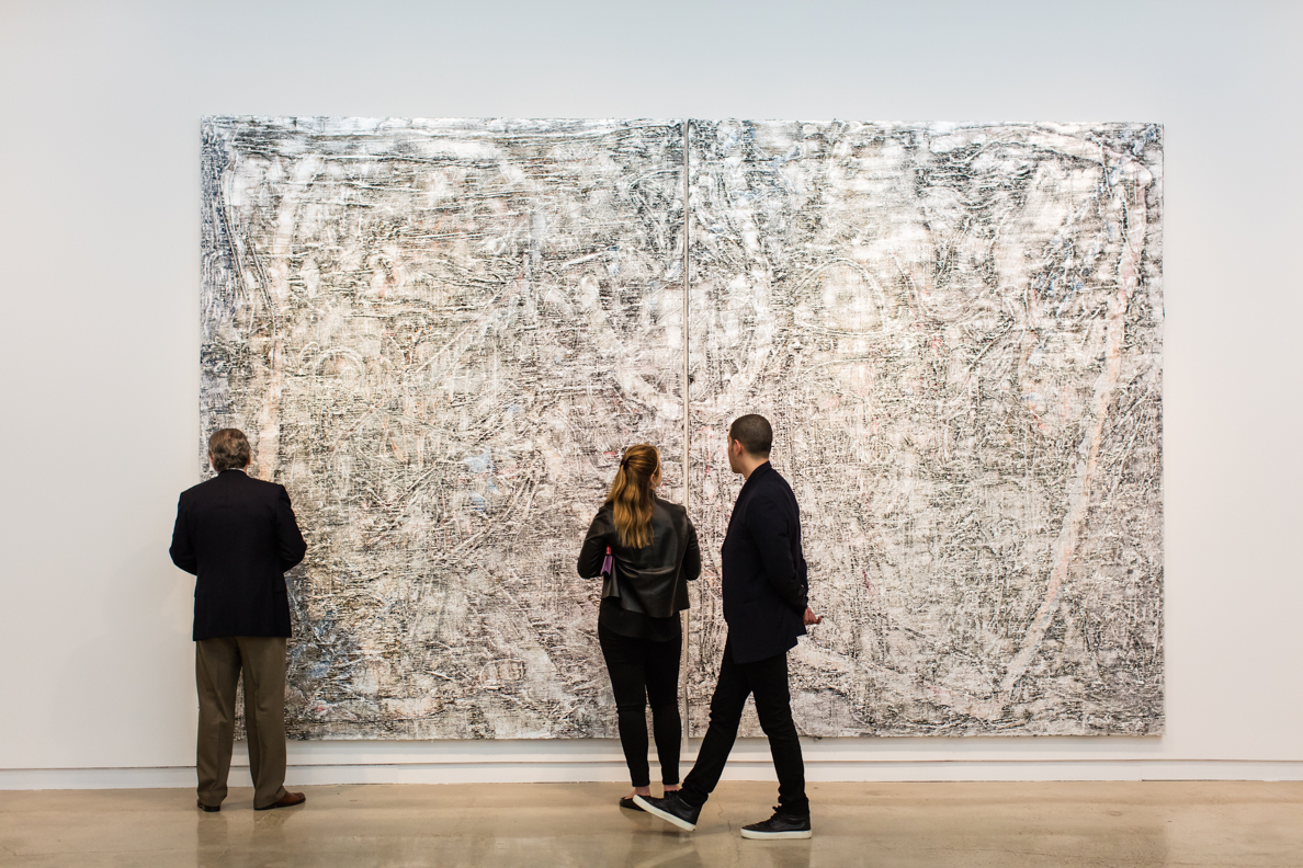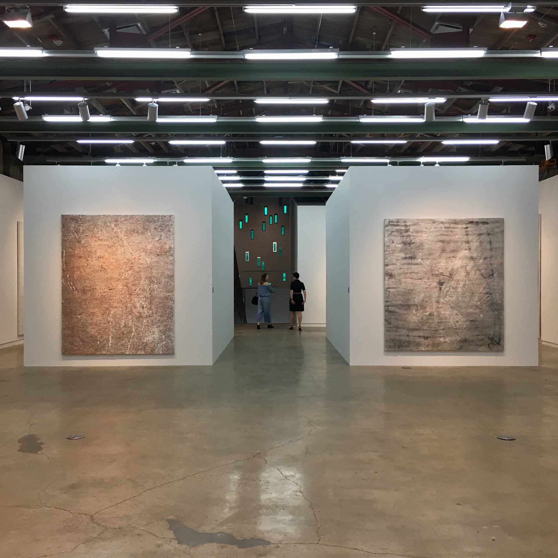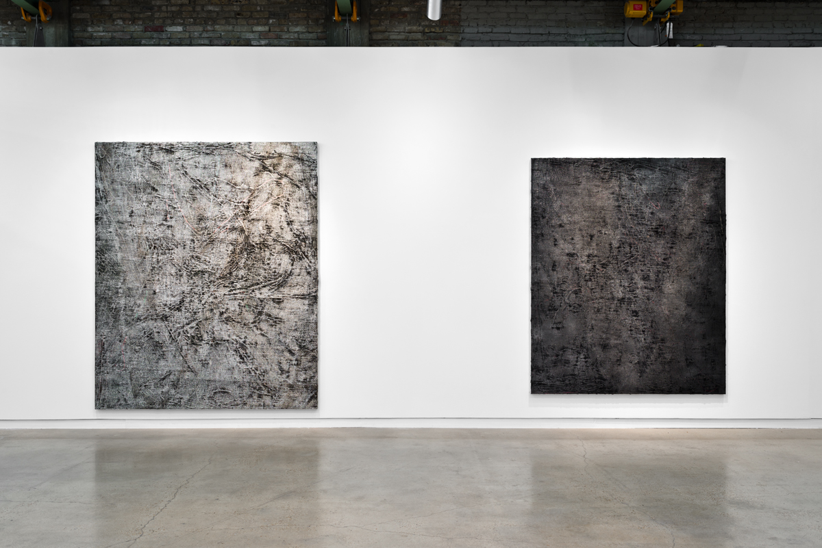 Garth Weiser, Diptych #1, 2017. Oil on canvas. Installed, 120 x 192 inches. Installation view, Garth Weiser: Paintings, 2008–2017, The Contemporary Austin – Jones Center, Austin, Texas, 2017. Artwork © Garth Weiser. Courtesy the artist and Casey Kaplan, New York. Image courtesy The Contemporary Austin. Photograph by Colin Doyle.