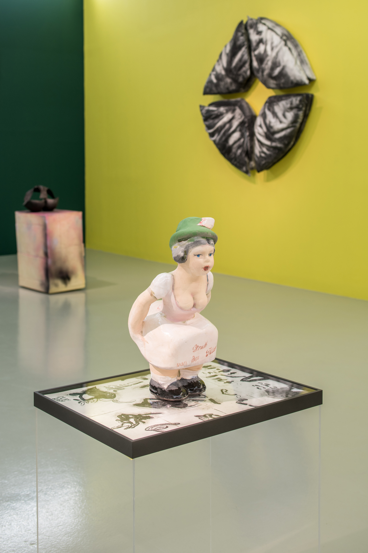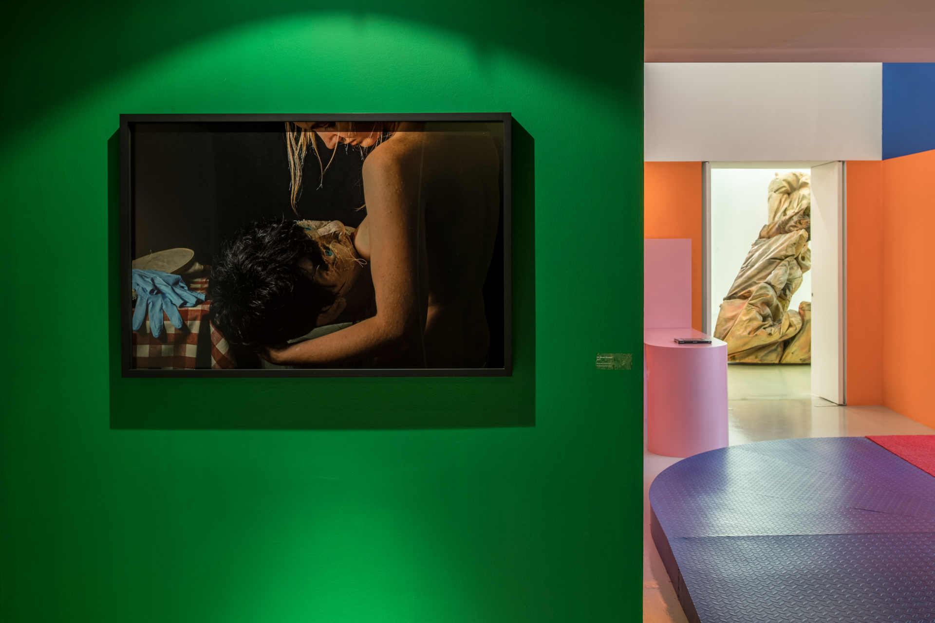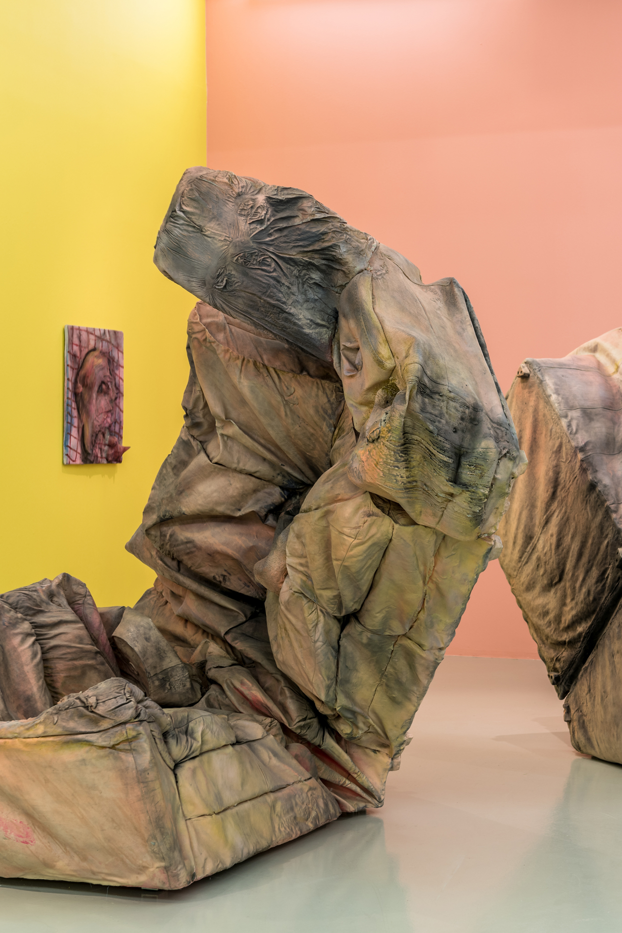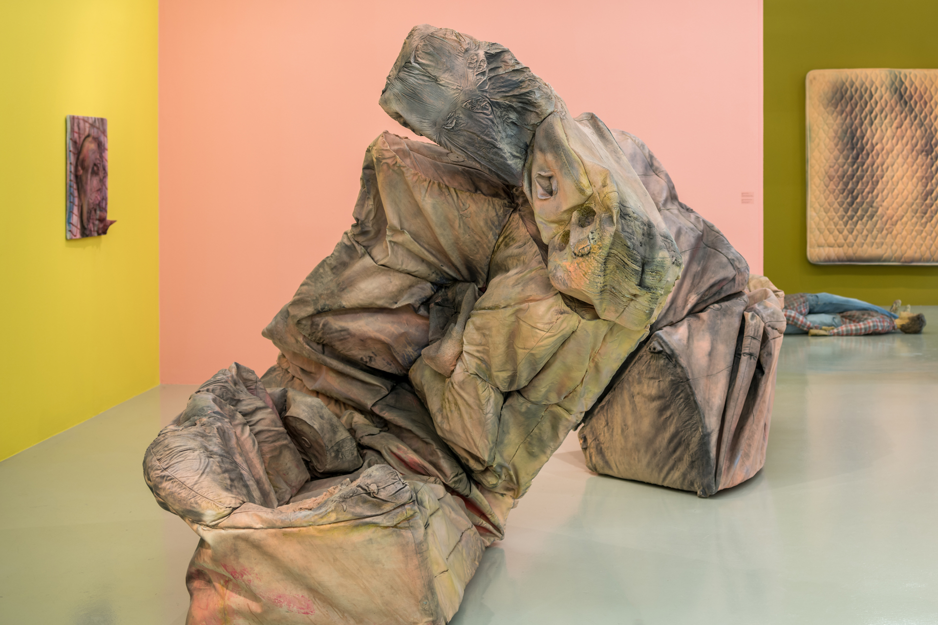 In the exhibition Kaari Upson: Never Enough, the DESTE Foundation presents over 30 pieces by Upson spanning her entire career from the photograph It’s Never Enough (2007), which was shown in her MFA exhibition at CalArts, to pieces from her last bodies of work—an untitled painting on canvas (2020–2021) and Portrait (Vain German)(2020). For the design of the show, Dakis Joannou collaborated with architect Sotirios Kotoulas to select a different color for every wall, in every gallery. This unconventional exhibition design provides viewers with a new lens through which we view and interpret her work, creating unexpected connections within individual pieces, and amongst the works shown together.