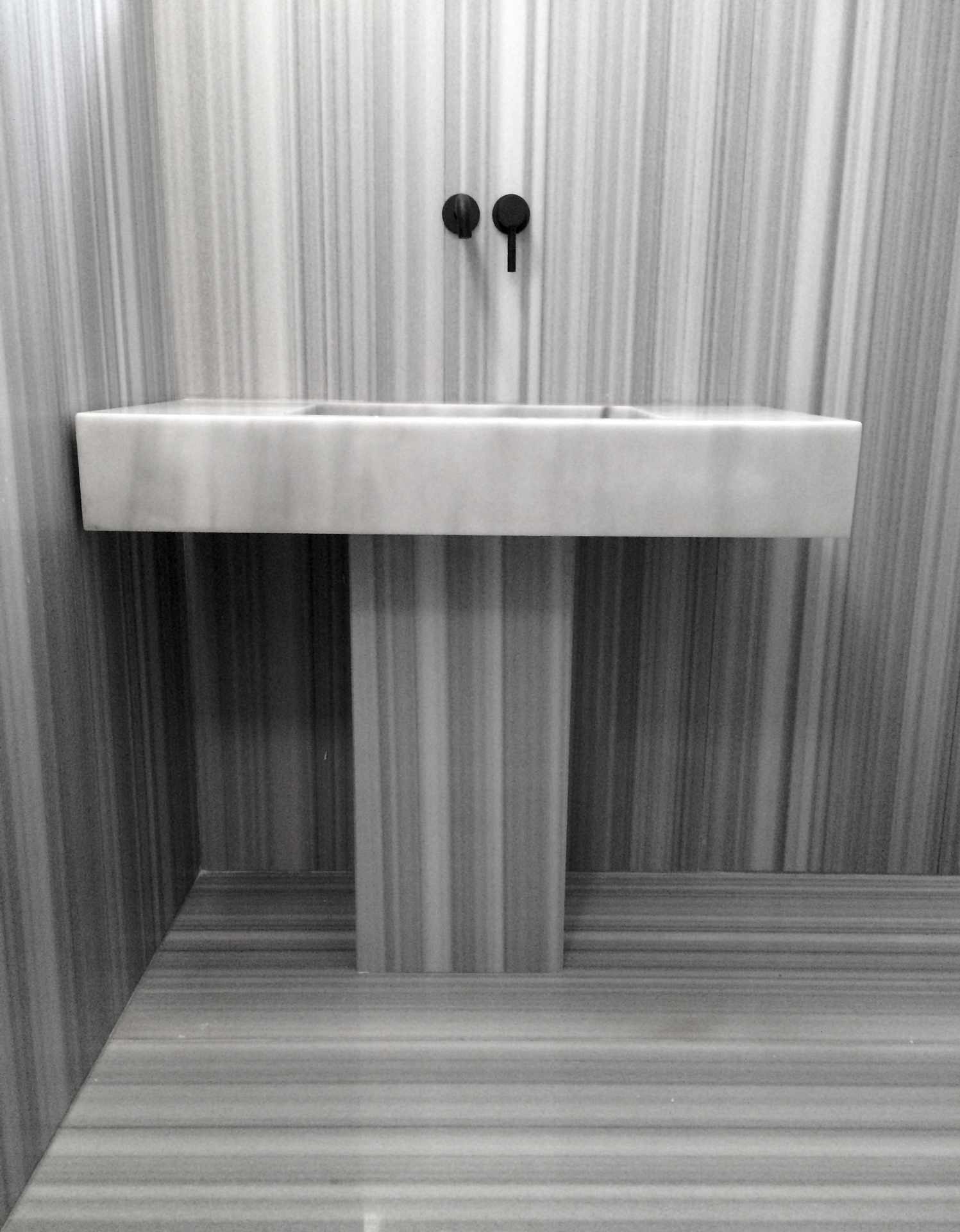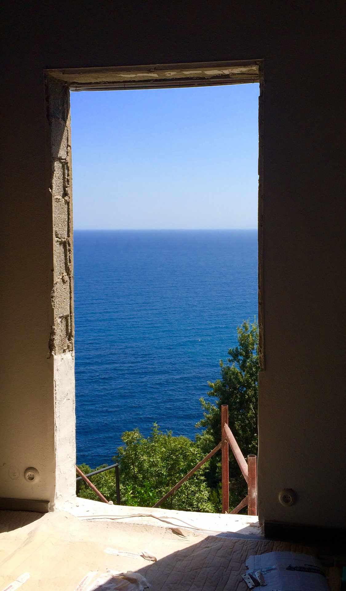 Pelio Beach House renovation Greece Stainless steel kitchen fabricated in Volos. Bathroom corner Bathroom Bosphorus Marble KitchenPindos Marble Pindos Marble Guest room wall and floorRainforest Marble Rainforest Marble Landscape Landscape nearby Marble cliff Aegean Aegean sunset gradient horizon